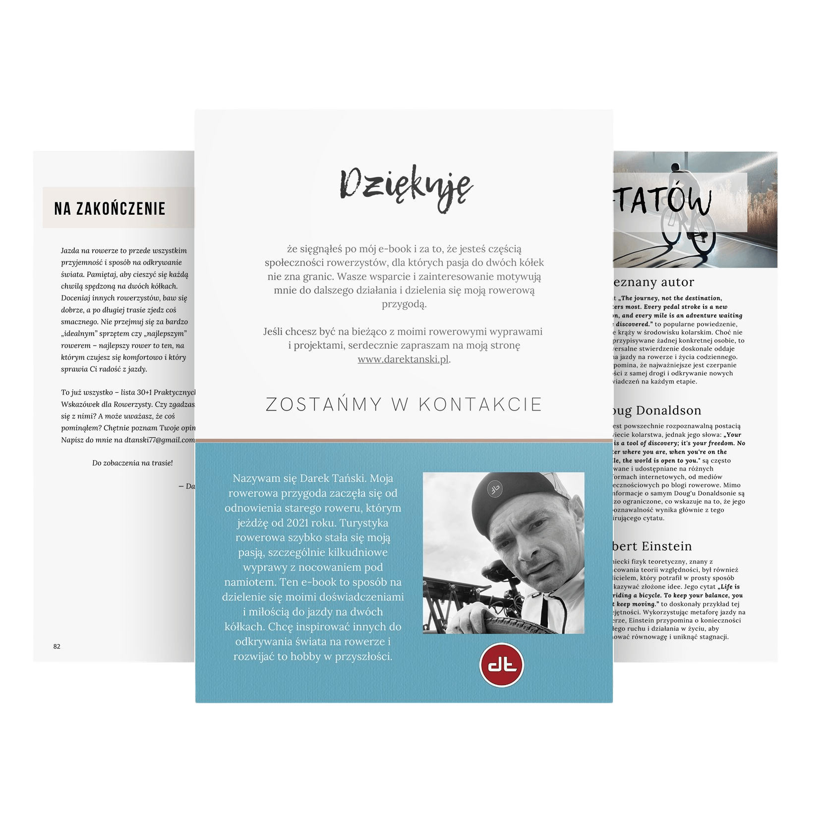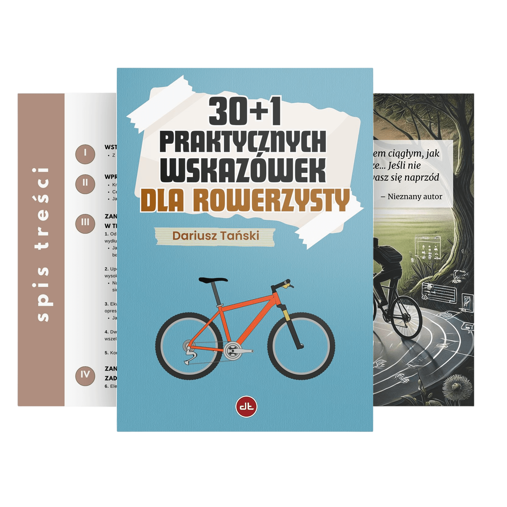 - 📙 Poradnik „30+1 praktycznych wskazówek dla rowerzysty” — druk kolor, format 152 × 228 mm, około 100 stron praktycznych trików i rozwiązań.